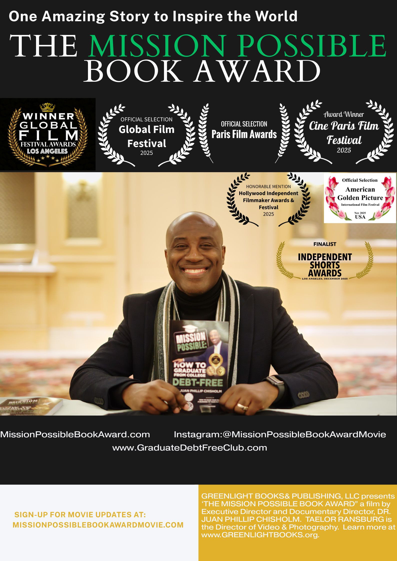 Overall, this achievement is a testament to the impact of Dr. Chisholm's award-winning book, Mission Possible: How to Graduate from College Debt-Free as its message continues to positively impact the lives of others in now, a motion picture format as an award-winning documentary film through "The Mission Possible Book Award."