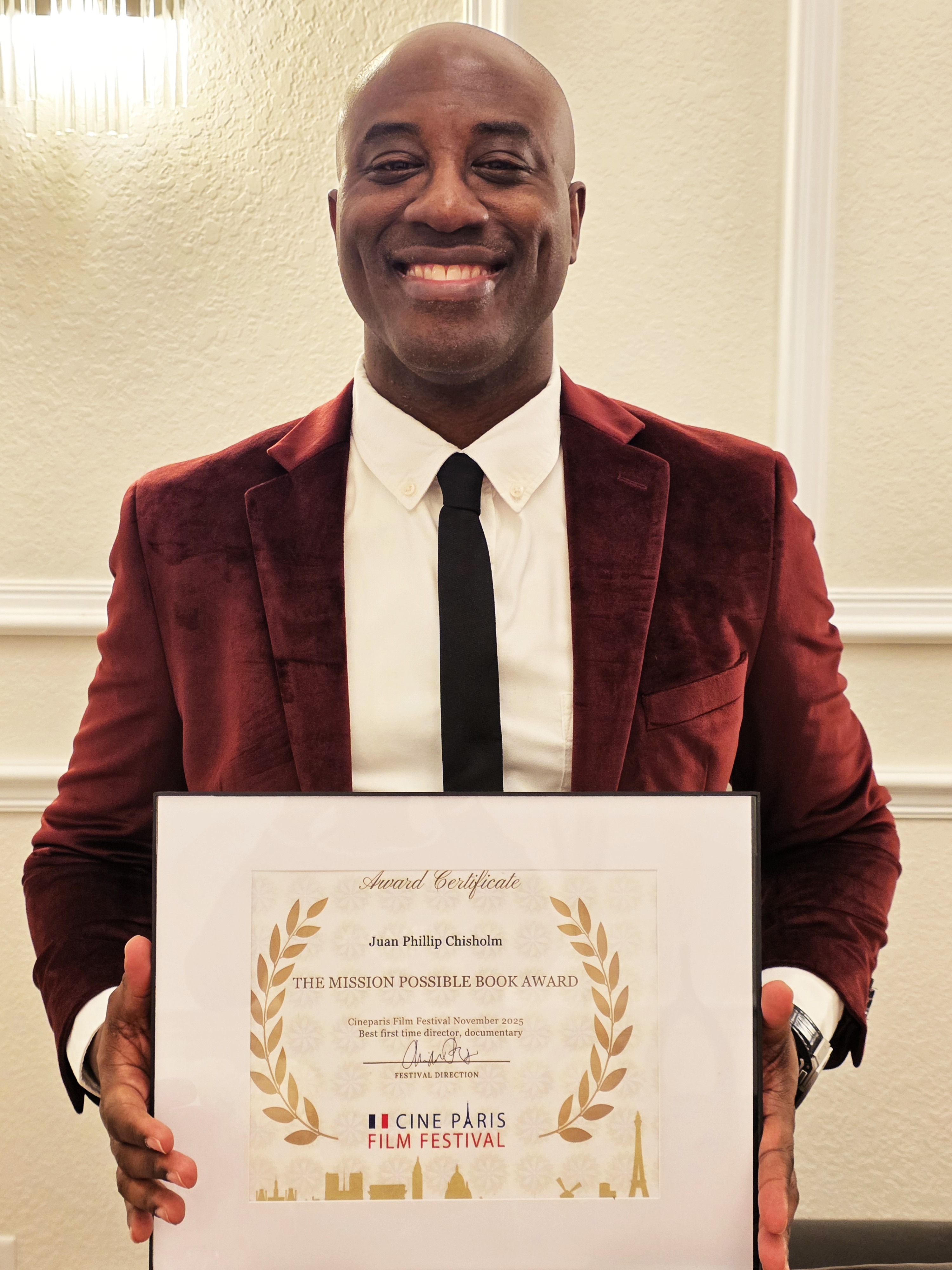Dr. Juan Phillip Chisholm Wins a Cine Paris Film Festival Award for 'Mission Possible Book Award' Film in Paris, France